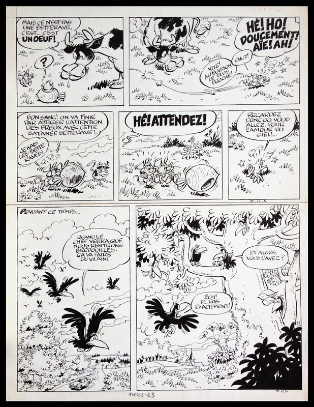 S'il est des planches connues et reconnues, que l'on a vues chez les galeristes, chez les copains ou en vente publique, il en est d'autres que l'on exhume de leur léthargie. C'est le cas pour cette pièce qui a dormi plus de 30 ans chez un particulier qui en avait fait l'acquisition directement auprès de Macherot.