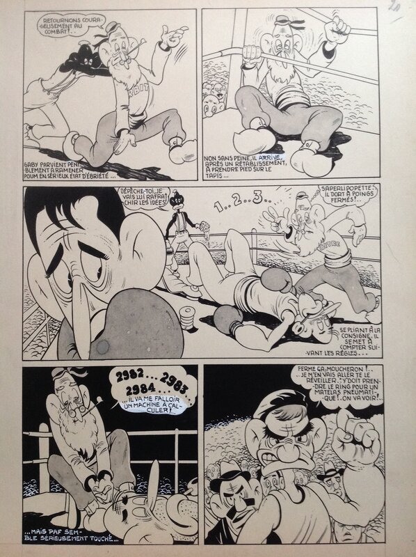 André Rey ( Atelier Chott ) Planche Originale 20 Cap' tain Paf 4 Sport santé Boxe ,Humour Bd Rc 1952 Pierre Mouchot (très Calvo)