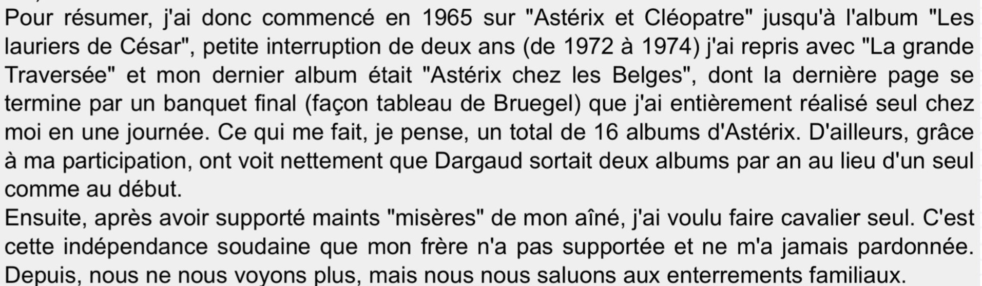 Goscinny dira:"L'essentiel de la révolution dont je peux être l'auteur dans ce métier, avec Albert Uderzo, c'est le succès de notre Astérix. Parce qu'à partir de ce moment-là, les adultes ont enfin avoué lire de la bande dessinée. C'est entré dans les moeurs. Les gens ont commencé à en parler d'une façon qui n'était plus péjorative. Cela a bénéficié à toute la profession et a donné un essor à ce moyen d'expression."