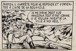 Bob Morane - Planche originale - Tome 5 - Bob Morane contre la terreur verte - Avec sa mise en couleur.