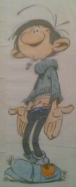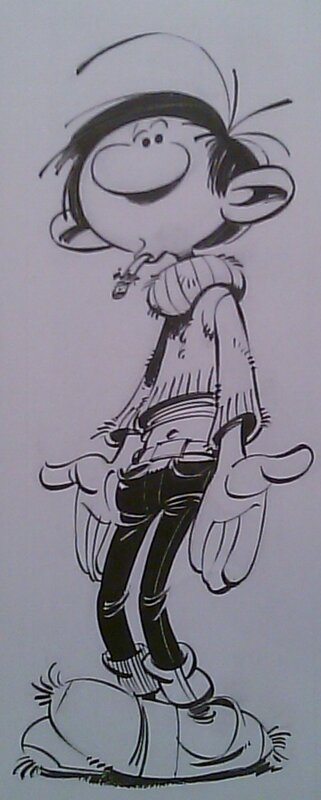 Illustration d'assez grande taille à l'encre de chine publiée diverses fois et dont la partie supérieure a été reprise comme couverture de l'album "Gaston" aux éditions Héritage.