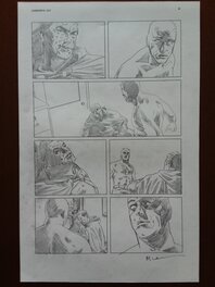 Gaudiano' s inks over Lark 's blu lines on comic book board.