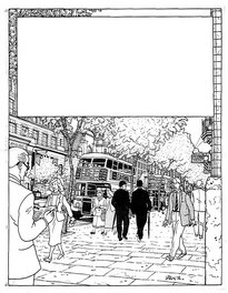 This page was first published in Pilote magazine 35 in 1977, as an introductory page to the Sevenoaks story. The blank space contained an essay by Rivière. Later it was used as the title page in the album.