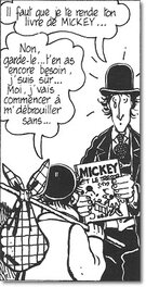 Tardi le perfectionniste va d'ailleurs, pour l'occasion, jusqu'à dessiner une vraie couverture de "Mickey et le Trésor" ("Mickey sails for treasure island", par Floyd Gottfrendson). Un livre qui l'a sans doute marqué dans son enfance, car on le retrouve à trois reprises dans Ici Même, et la même édition est présente dans "120, rue de la Gare" (voir images additionnelles)! Pour en savoir plus sur Tardi et Mickey, lire ce blog fort érudit d'un amateur grec de bande dessinée, que je remercie: http://pollakiadiafora.blogspot.fr/2013/06/GottfredsonTardiEco.html