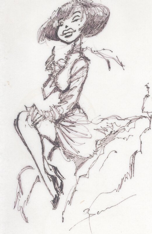 Valentine - Croquis - réalisé au feutre fin par André Benn lors d'un repas sur bout de nappe en mai 1998