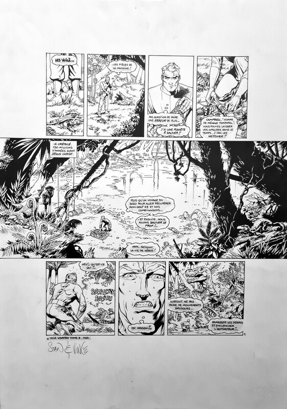 Stanislas Manoukian and Vincent Roucher are two French comic authors, who are known for their collective oeuvre as Stan & Vince. Both artists were born in Paris in 1969; Vince in August and Stan in October. They enrolled at the Estienne art school in 1985, where they quickly joined forces. heir first comic books were solo efforts, however. Stan produced the fantasy album 'Parasite' at Zenda in 1992, while Vince created 'Eden' for the same publisher at the same time. Their first joint comics project was a remarkable one. Each story of the science-fiction series 'Vortex' (Delcourt, 1993-2003) was told twice: once from the perspective of character Campbell (drawn by Stan) and once from that of Tess Wood (drawn by Vince). The series about the hunt for time traveling Nazis is full of tributes and references to the American comic books and pulp magazines of the 1930s and 1940s. Stan and Vince's passion for American pop culture was also evident in their parody comic album 'Putain de télé!', which was published by Albin Michel in 1995. Stan and Vince then teamed up with Swiss comics legend Zep for the creation of 'Les Chronokids' (Glénat, 2008-2014), a children's comic about two time traveling kids. Text (c) Lambiek