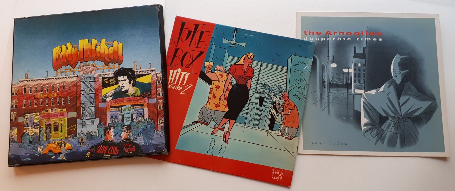 Serge Clerc / coffret Eddy Mitchell, 1976 – Barclay ; Juke Box Hits, 1982 ; Underdog Arhoolis, 1990 – Bpm Records (prise de vue de l’auteur)