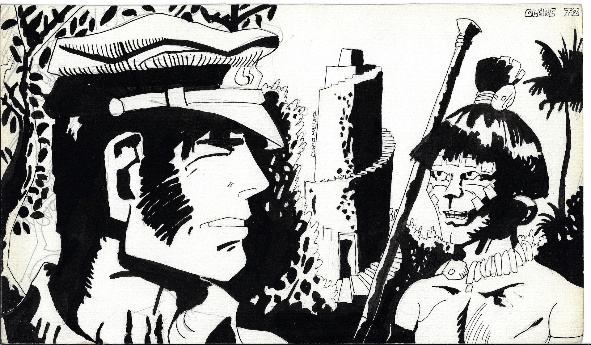 Serge Clerc, dessin inédit de jeunesse d’après personnages de Hugo Pratt, 1972 (collection de l’auteur)