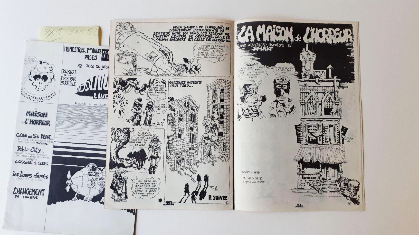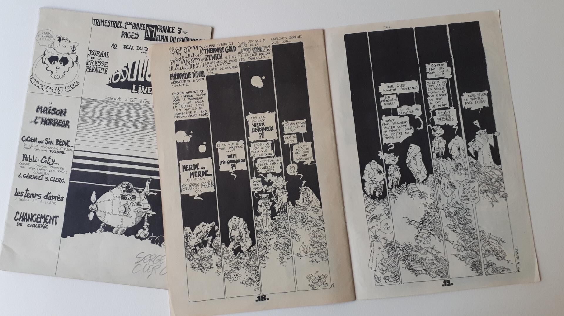 Serge Clerc, Fanzine Absolutly Live #1, couverture + p.18/19, 1974 (prise de vue de l’auteur)