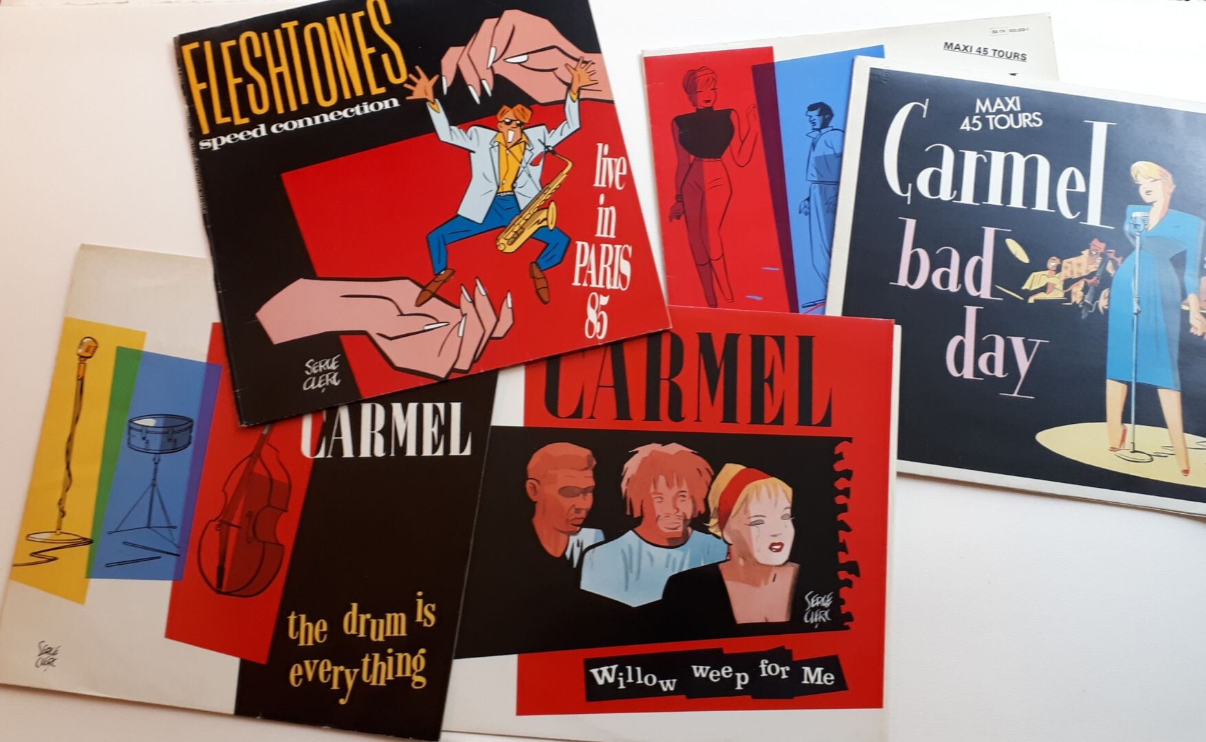 Serge Clerc / Fleshtones, 1985 – IRS, CBS ; Carmel 1983, 1984 – London Records (prise de vue de l’auteur)