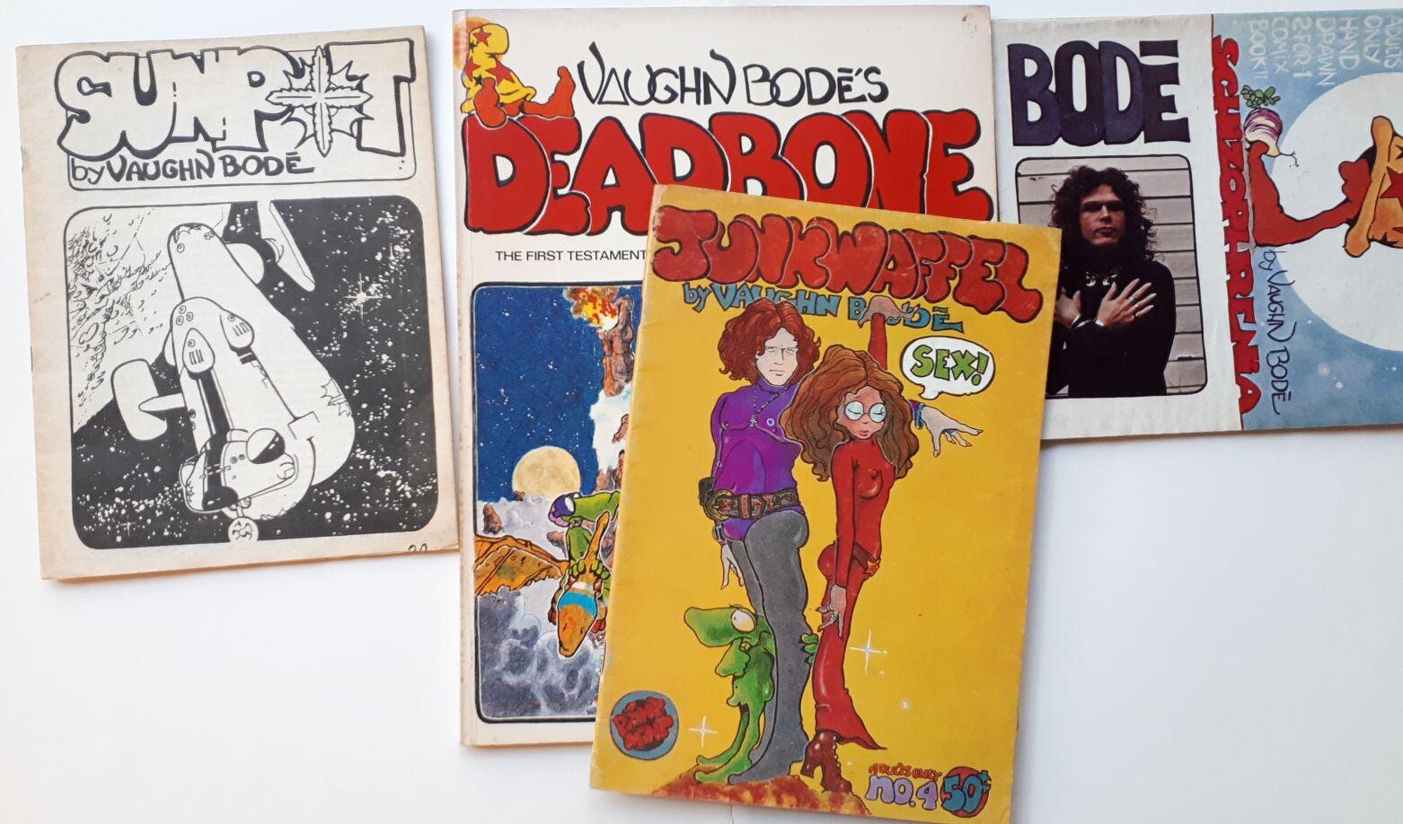 Vaughn Bodé, Sunpot – 1971 / Deadbone – 1975 NCC / Junkwaffel #4 – 1972 Print Mint / Cheech Wizard – 1973 / Last Gasp (prise de vue de l’auteur)