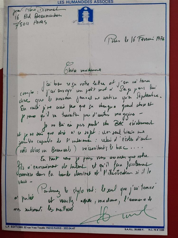 Accepteriez-vous d’introduire votre témoignage par l’histoire incroyable de la lettre que votre mère a adressée à Jean-Pierre Dionnet en 1976 ?