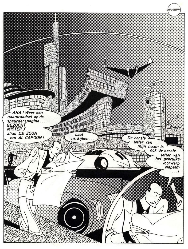Tout comme Joost Swarte en suivant Hergé, avec quelques autres Hollandais « fous furieux » du magazine de 1971 Tante Leny. Mais en le transgressant, en le pervertissant — avec entre autres de la politique et du sexe ! La KLARE LIJN (terme inventé par lui pour l’expo de Rotterdam en 1977) : la LIGNE CLAIRE, quoi !