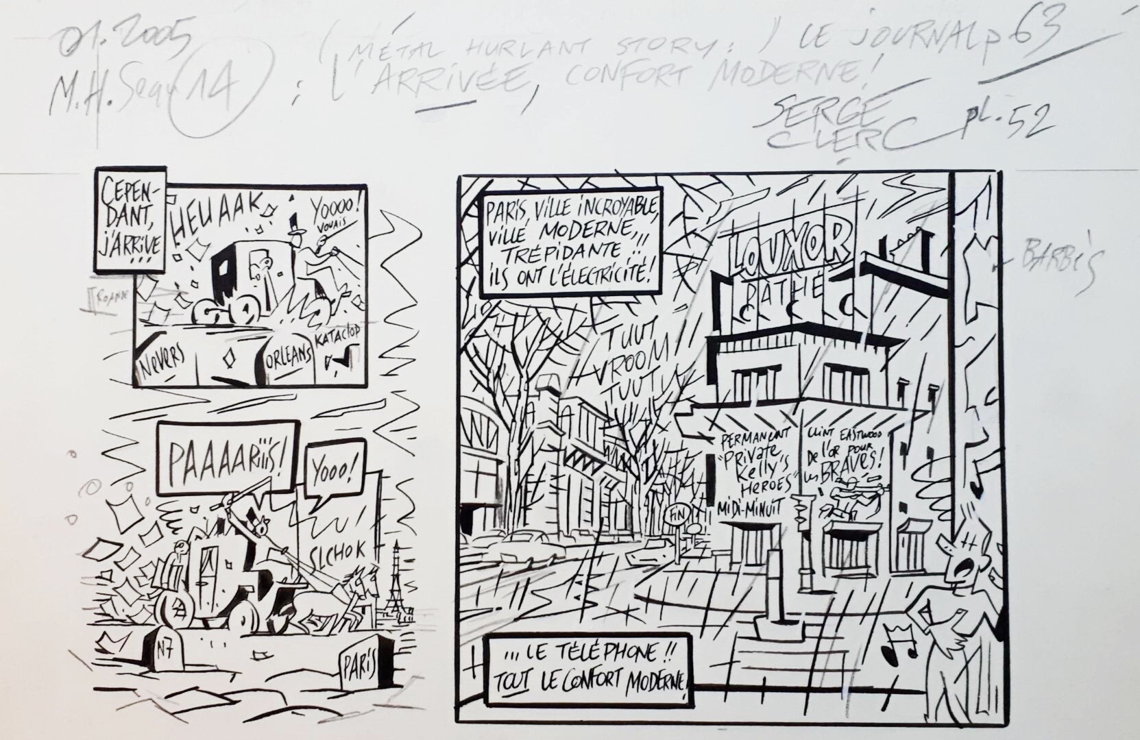 Serge Clerc, Le journal / histoire totalement déconnante et vraie de Métal Hurlant, Denoël Graphic, 2008 (planche originale, collection de l’auteur)