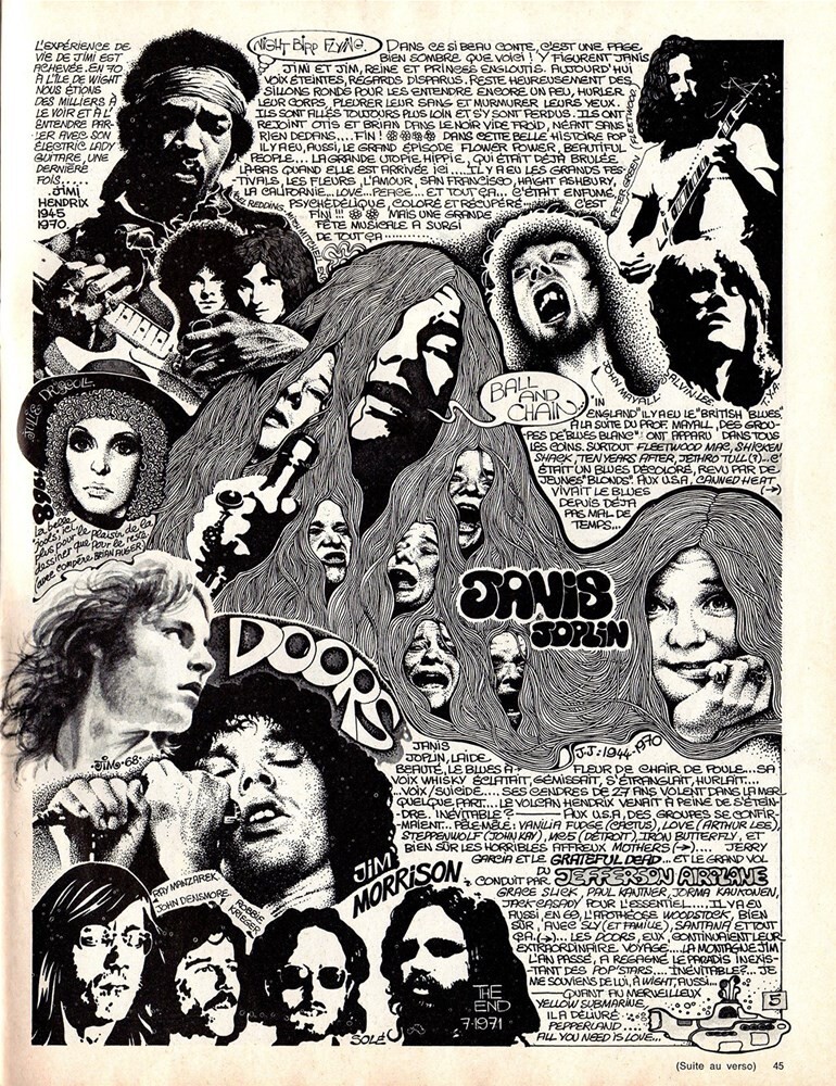 Nous étions en 1974 et achetions Rock & Folk. Ce qu’on avait en plus, c’était qu’on était dans le rock en plus de la BD, les deux étaient très liés pour nous.