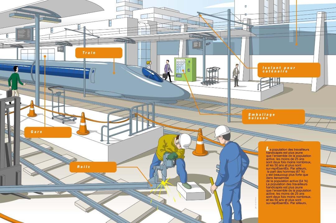 Picotto, illustration pour la société Saint-Gobain, gare TGV, journal interne, 1987