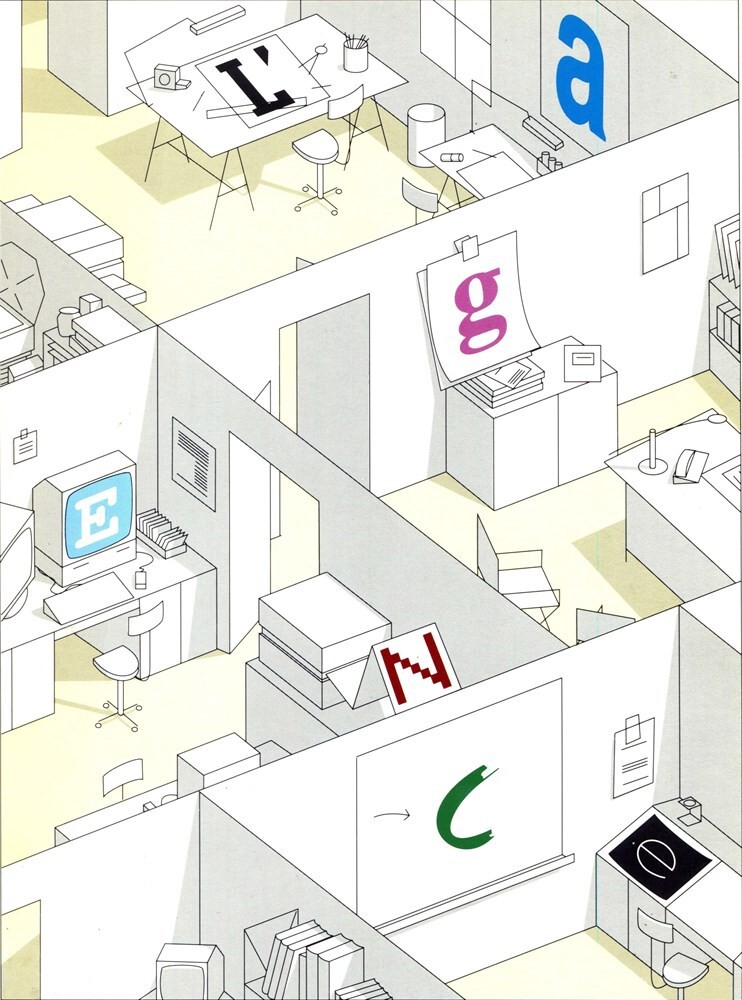 Par contre, cela a été un bouleversement pour la typographie, qui s’est alors faite sur ordinateur. C’était le tout début de la révolution informatique, rien n’était encore très au point. À cette époque, les gens ne se rendaient pas encore compte de ce qu’on pouvait réellement faire avec cette nouvelle technologie. Pour ma part, j’ai eu un panel de création très large, très pixelisé.