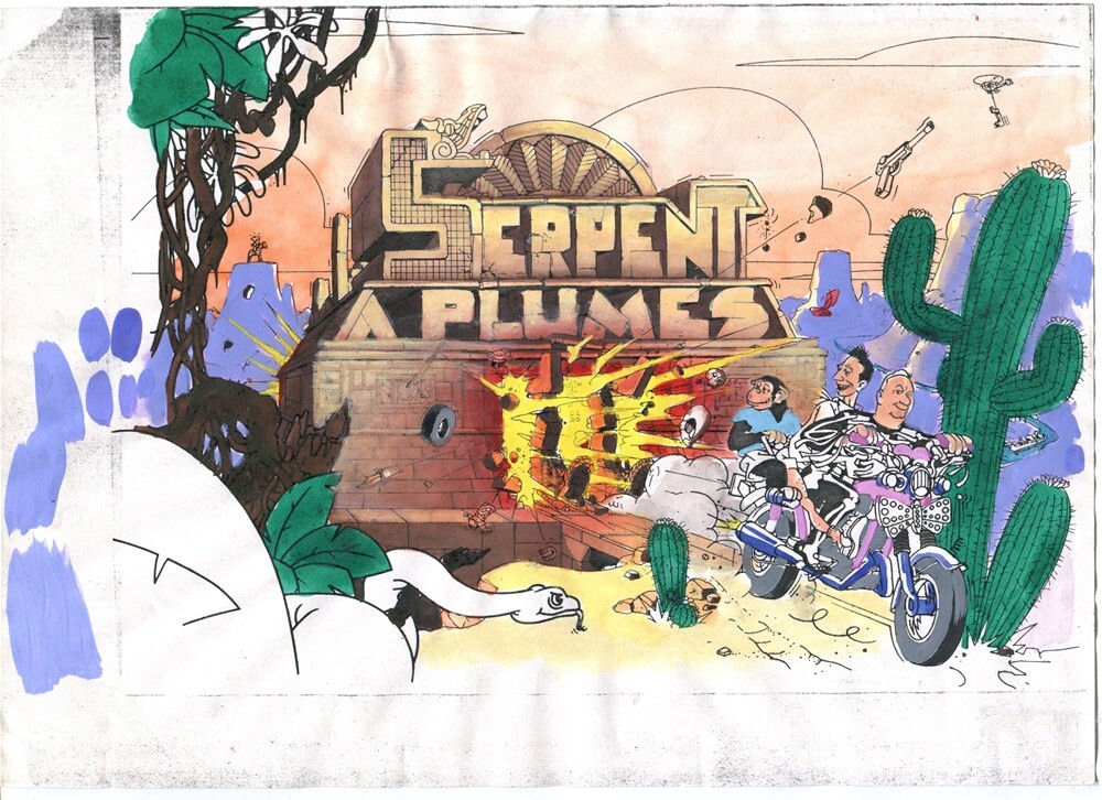 Picotto, dessin préparatoire original inédit, La Vengeance du serpent à plumes, Pathé Films, 1984