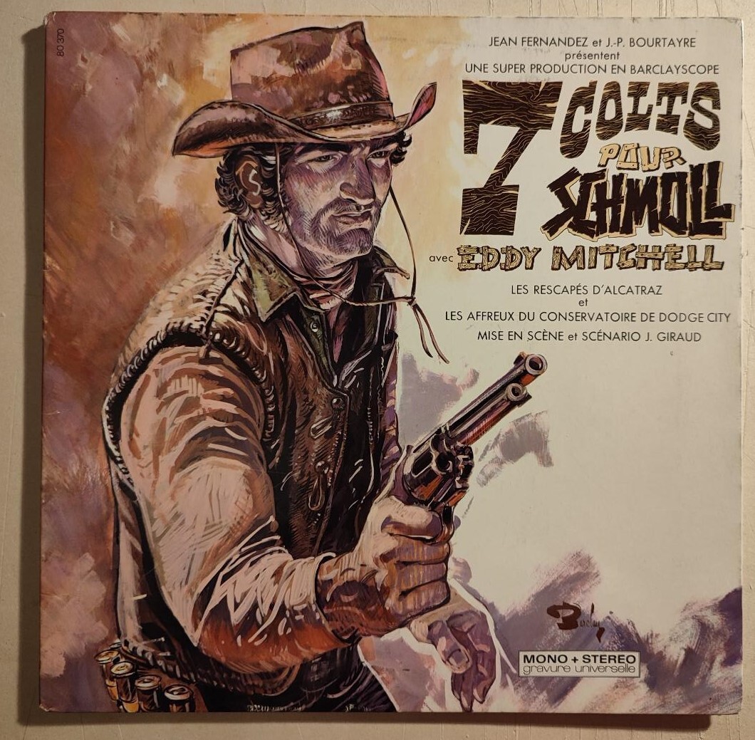 Du coup, sans s’en rendre vraiment compte, Moebius a commencé à appeler Eddy Mitchell « Schmoll ». Ils ont décidé tous les deux que ce serait son surnom. Moebius a dessiné pour sa pochette une bande dessinée de western avec Eddy Mitchell en cow-boy : l’album s’est appelé Sept Colts pour Schmoll. Pour Moebius, reprendre le titre de ma série a été parfaitement naturel. Moi, cela m’a plutôt flatté.