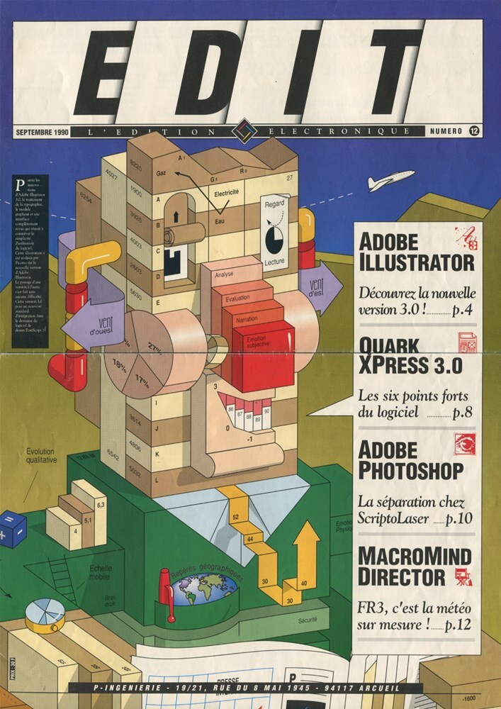 Picotto, revue Edit #12, couverture, dessin sur logiciel Adobe Illustrator, 1990