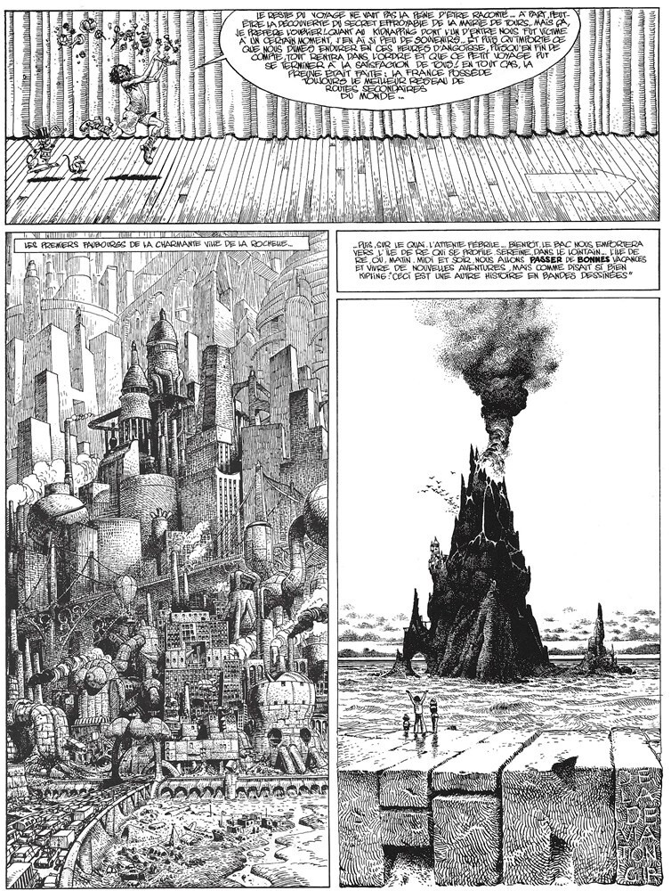 Pour revenir aux critiques de Druillet à l’encontre de Moebius, cela a correspondu à une petite période, pas très longue, avant L’Homme est-il bon. Selon moi, cela a été une petite guéguerre complètement stérile, face à laquelle je n’étais pas d’accord avec Druillet, même si je l’aimais beaucoup. Je lui avais dit que je trouvais idiot de s’embrouiller pour ça.