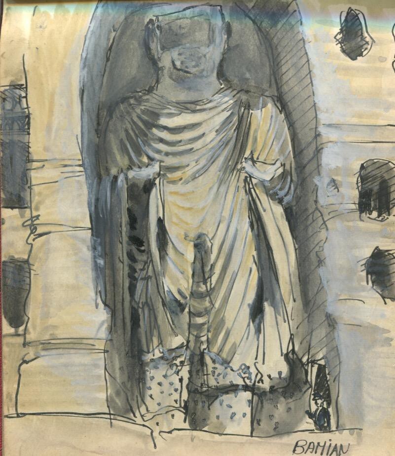 Picotto, dessin de voyage, Les grands Boudha de Damian, 1976