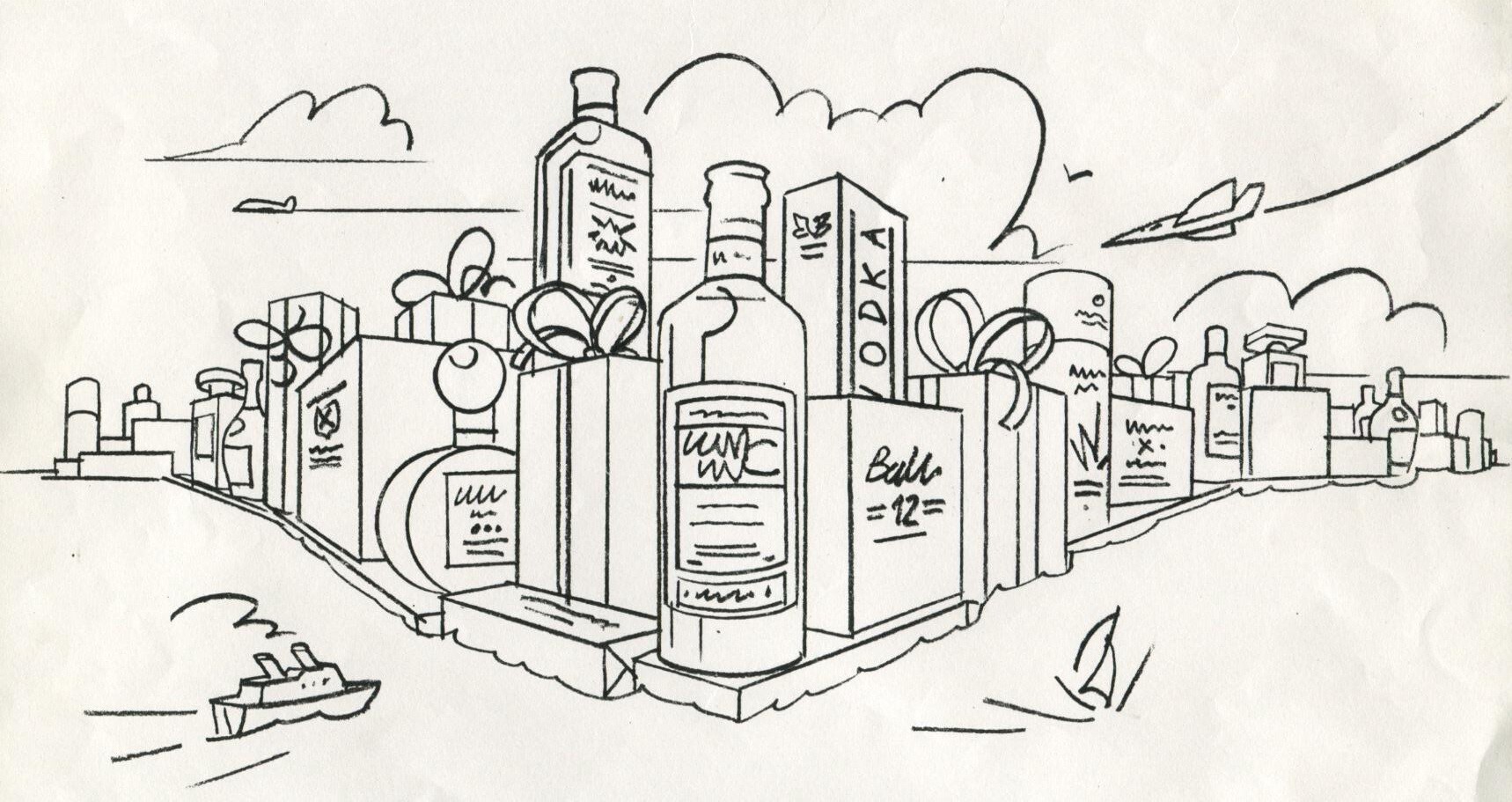 Picotto, illustration pour un groupe industriel producteur d’alcool, dessin sur Adobe Illustrator, 1985