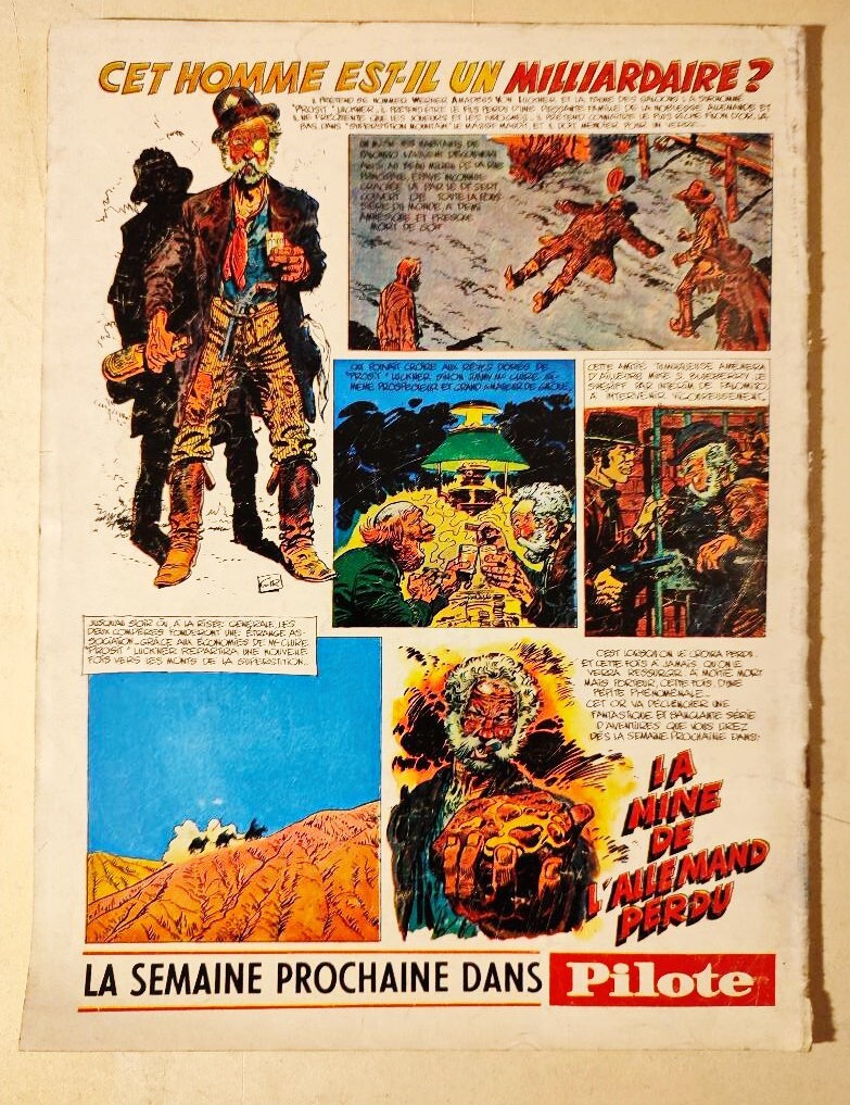 Jean Giraud, Les Aventures de Blueberry – La Mine de l’Allemand perdu, page de promotion, revue Pilote #496, 1969
