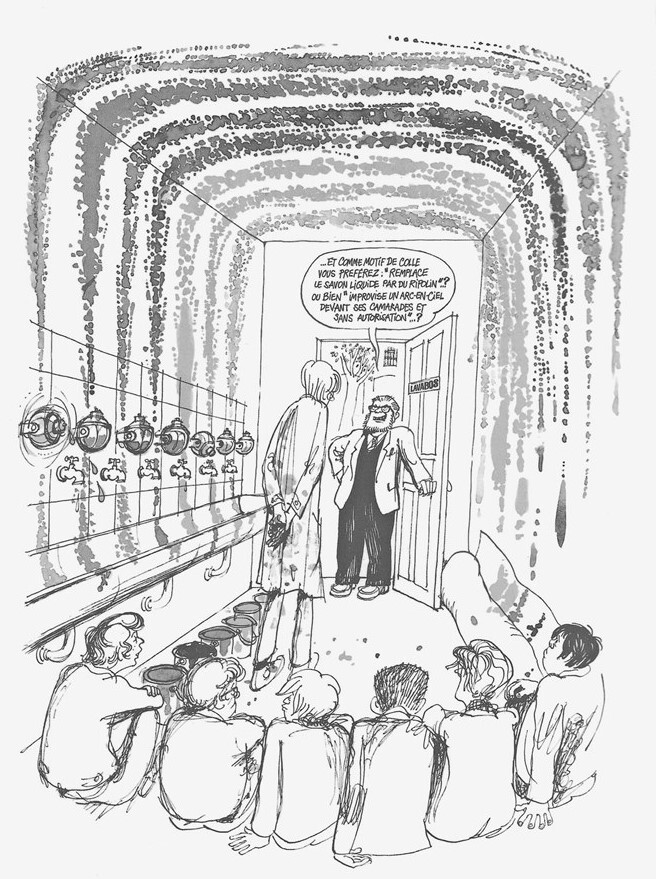 J’ai intensifié l’utilisation des codes de la bande dessinée dans mes travaux pour la communication d’entreprise. J’ai fait de l’infographie, des dessins qui expliquaient les processus de fabrication. Pour la société Saint-Gobain, j’ai dû faire une bonne cinquantaine de dessins, dont des doubles pages pour leur journal interne, où j’expliquais tout ce qu’ils faisaient dans l’aviation, la marine, le ferroviaire.
