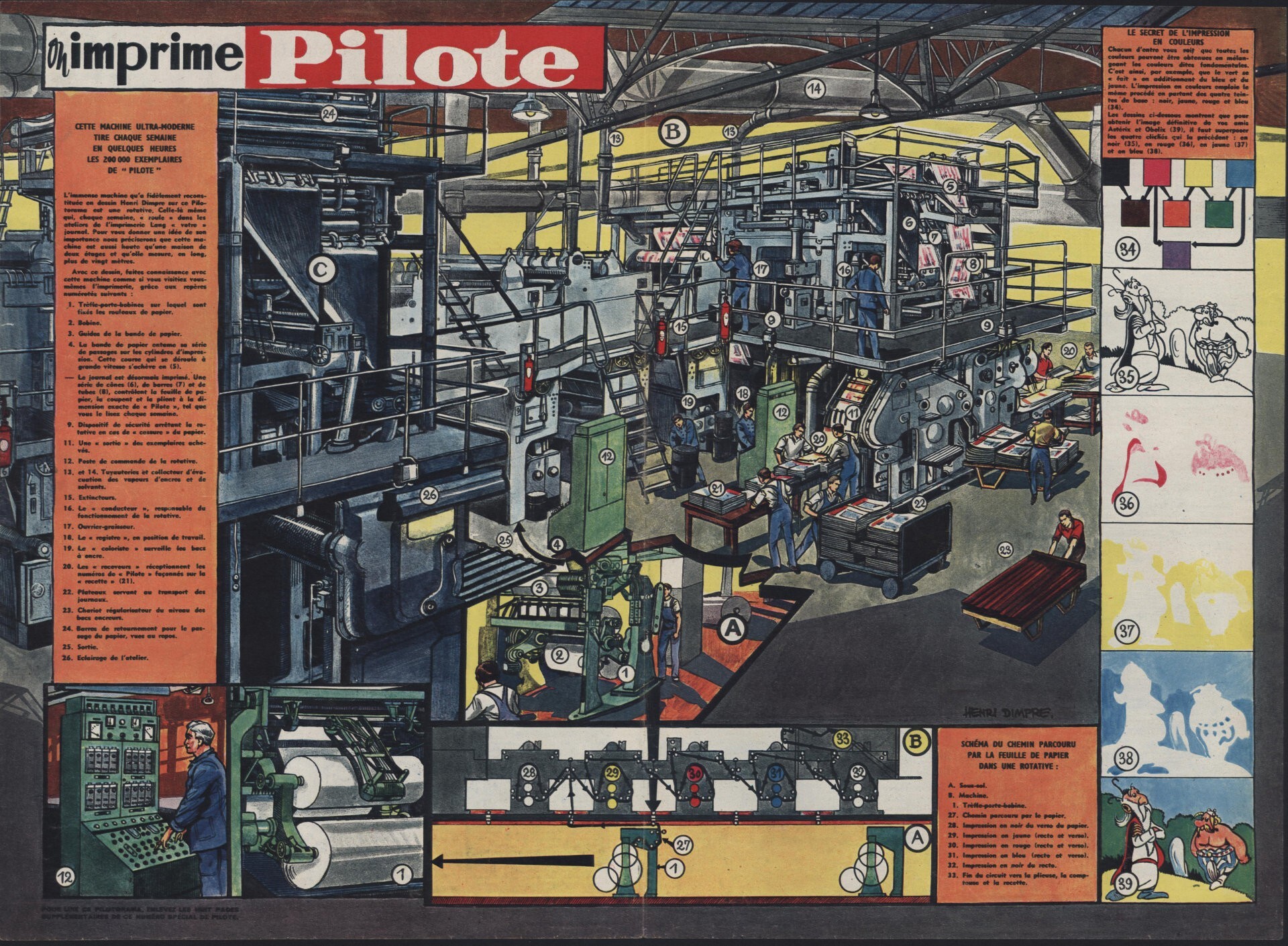 J’ai fait beaucoup de présentations en doubles pages du type Pilotorama (dépliant pédagogique inséré dans les pages centrales du journal Pilote, avec des scènes panoramiques de centaines de sujets techniques, scientifiques, historiques / ndlr) sur des brochures, en me servant de la technique de narration de la bande dessinée.
