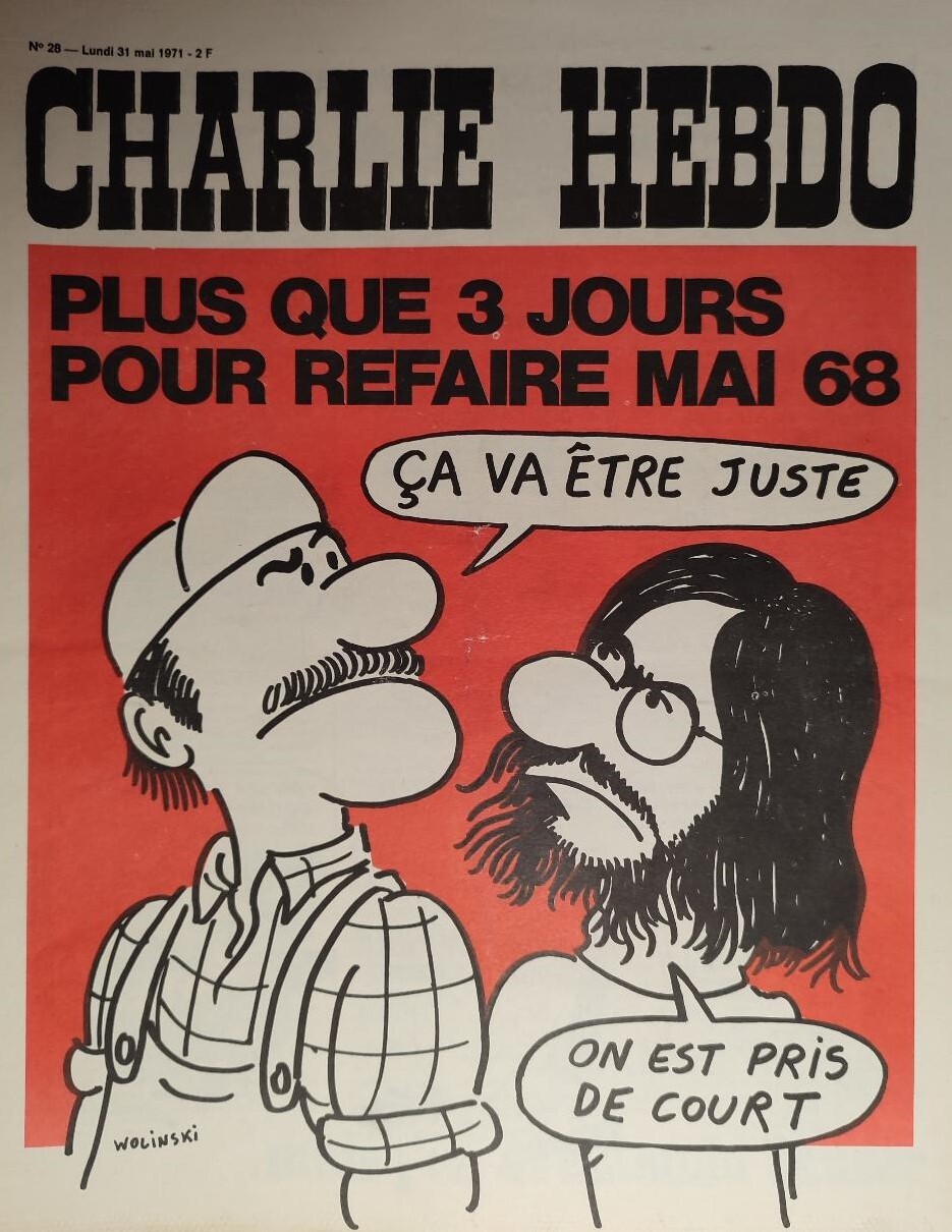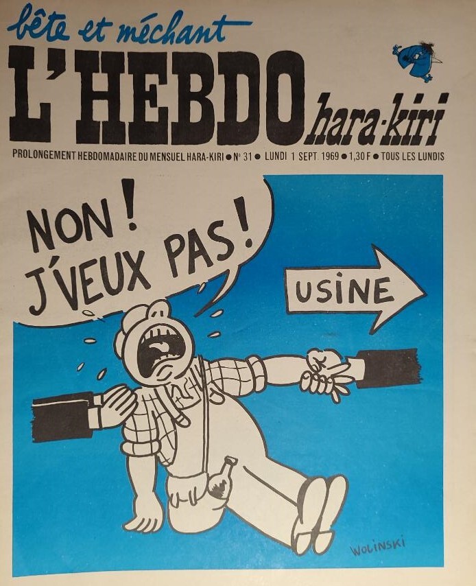 Wolinski, dessin de couverture, journal Charlie Hebdo #28, 1971.