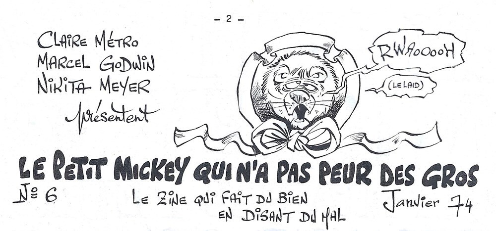 Le Petit Mickey qui n'a pas Peur des Gros, profession de foi (de morue ? / NDLR), premier numéro, 1972.