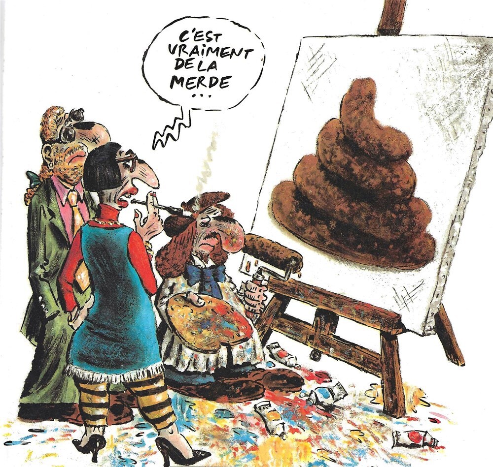 Graphiquement, cela s'exprime de façon très forte. Après-guerre, jusqu'en 68 (là, je sors de la BD), pendant l'Occupation et après, les dessinateurs ont été profondément marqués par une exposition à Paris en 1952 où ils ont pu voir les dessins de Saul Steinberg. La génération du dessin d'humour bascule vers la politique et la satire sociale ; des jeunes comme Topor, Chaval, Bosc, Mose, Siné, André François... sont complètement bouleversés et profondément marqués par son génie. Ils plongent dans un humour souvent noir, très fort, puissant, violent. Cela change le dessin d'humour qui est dominant jusqu'en 68.