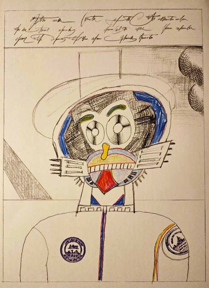 Jean Bosc, Les Fleurs du président robot, dessin original, s.d.