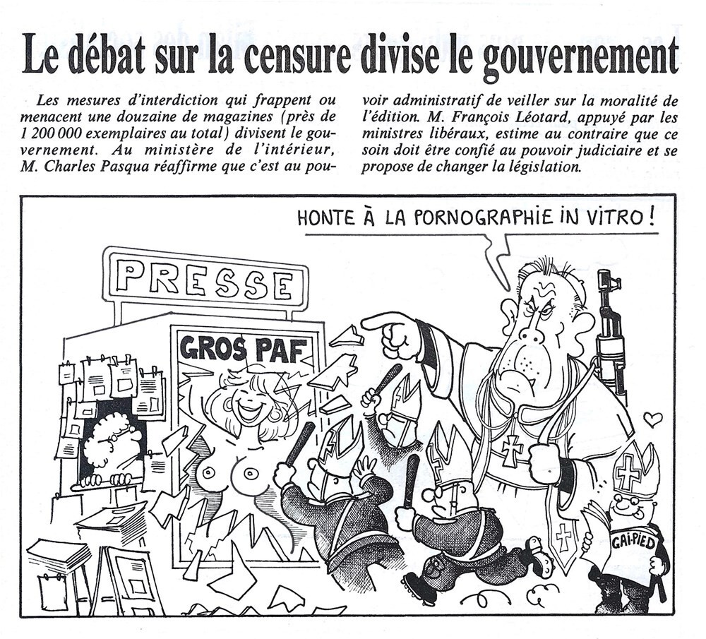 À part certaines pressions institutionnelles, il n'y a pratiquement plus de censure aujourd'hui. Du côté de la loi de 49, qu'on a beaucoup décrite avec Bernard Joubert dans le livre Images interdites, une interdiction fait un focus sur quelqu'un. C'est pour cela qu'on détestait, avec Bernard, quand le ministère de l'Intérieur interdisait une BD médiocre... On était obligés de défendre quelque chose qu'on n'aimait pas, un truc naze.
