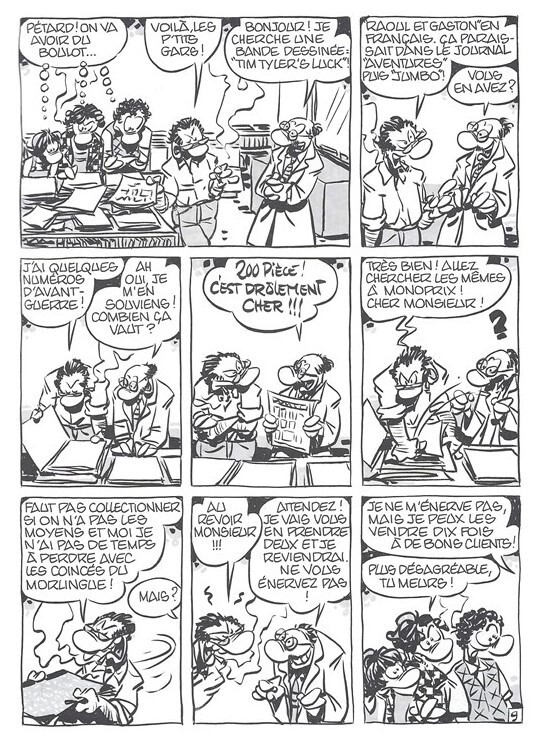 J'allais donc traîner aux Puces, j'allais dans les festivals, dans les salons qui commençaient à être organisés, j'échangeais mon fanzine contre plein d'autres, je lisais les quelques revues qui existaient, notamment les Cahiers de la BD, Schtroumpf de Glénat : je me renseignais partout où je pouvais. Et puis à l'époque, il sortait environ 500 albums de BD par an ; il en paraît 7 000 aujourd'hui. Donc on pouvait maîtriser le champ, je pouvais aller voir facilement ce dont on me parlait. Comme j'ai fait la première rubrique régulière sur la bande dessinée, dans chaque numéro, j'ai tout de suite reçu des services de presse de tous les côtés.