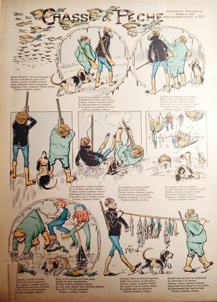 Toutes ces recherches de construction graphique, qui aboutissent ensuite à des planches gravées dans lesquelles il commence à y avoir des cases, vont finir dans les formes de l'imagerie comme celle de Pellerin à Épinal où il y a du texte sous les images. Cela va donner la forme que vont prendre les premières revues de BD françaises qu'on appelle des illustrés, en attendant qu'on se réapproprie les phylactères du Moyen Âge, avec les premières bulles de la bande dessinée moderne.