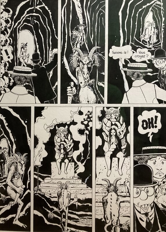 Une planche de Tardi, parce que j'ai passé de longs moments à lire les premiers albums d'Adèle Blanc-Sec, mi-fasciné, mi-effrayé par la momie, le ptérodactyle, Pazuzu, ou ce diable ventru, cornu et cul nu. Et parce que c'est si beau qu'il n'y a rien de plus à dire.