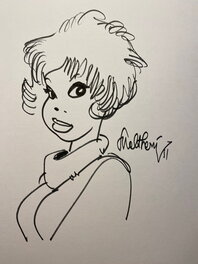 François Walthéry, illustration originale, portait de Natacha en col roulé, "Sortilège !". par François Walthéry
